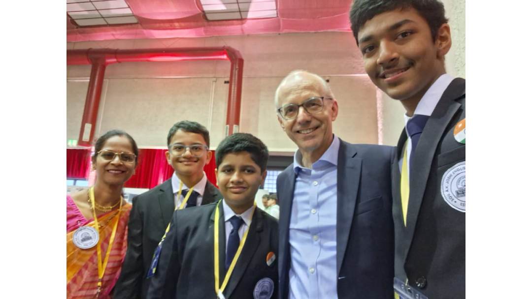 Our Grade 9 students Aryan Mhatre, Anish Barve and Soham Bedekar showcased their innovative project “Smart Way to Check Carbon Emission Caused by Vehicles.” in International Science Expo at Luxembourg. They were guided by Hon. Dr. Sudhakar Agarkar Sir, Mrs. Gauri Mohile and Mrs. Anushka Sarpotdar. The model highlighted environmental awareness and sustainable technology. Meeting the Prime Minister of Luxembourg, Mr. Luc Frieden was a proud moment. The experience boosted their confidence, broadened their perspective and deepened their passion for scientific learning. I thank Dr. Agarkar Sir, parents, guide teachers for their unwavering support in this entire journey.